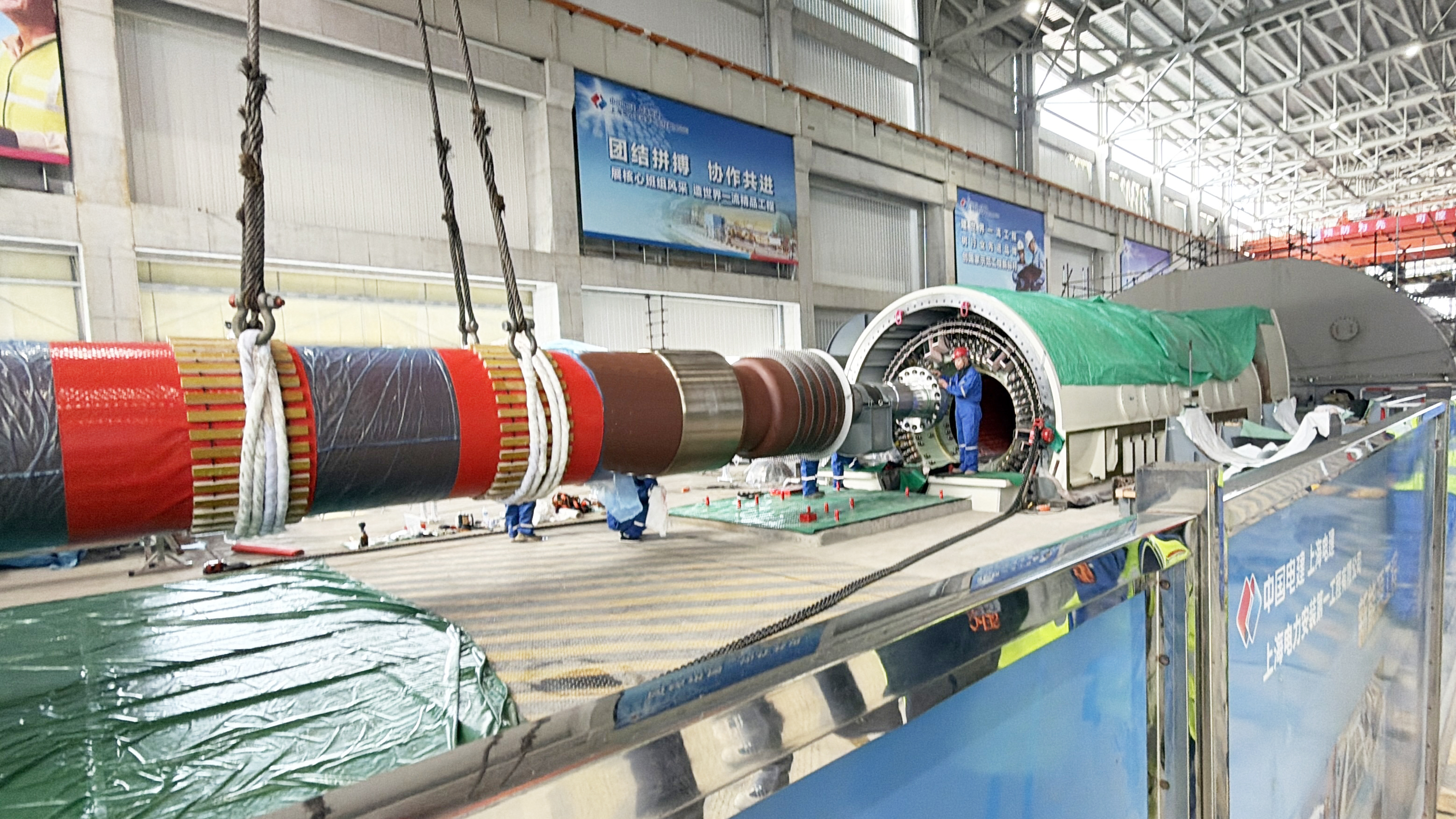 3月21日,由一公司承建的漕泾综合能源中心二期项目3号机组,发电机转子穿装顺利完成,标志着机组核心设备安装取得里程碑式突破,为后续汽轮机扣盖、油循环、盘车调试及整套启动创造了有利条件。 发电机转子作为机组稳定运行的核心部件,转子被誉为发电机的“心脏”,转子穿装则是安装过程中技术难度最高、风险最大、协作要求最严的关键工序之一,其穿装作业对施工精度、协同配合及安全管控等方面均提出严苛要求。本次穿装的发电机转子长14.042米,重90吨,定子与转子之间间隙小,属于高风险、高精度的关键工序。 为确保穿装作业安全、高效、精准一次完成,项目团队提前编制专项施工方案,并联合各参建单位共同开展技术交底与安全风险辨识,全面细化作业流程与责任分工。作业过程中,项目团队严格执行起吊、找正、滑移、就位全流程管控,各环节衔接紧密、操作精准,全程无碰撞、无刮擦。历时5小时,发电机转子顺利穿装就位,各项技术指标均达到设计要求,本次穿装作业取得圆满成功。 项目团队以毫米级精度和标准化作业,充分展现了过硬的技术实力与协同能力。下一步,项目团队将进一步强化责任意识、质量意识和安全意识,紧盯工程建设关键节点,持续优化施工方案,严格落实标准化作业要求,全力推进机组安装与调试工作,确保项目如期交付。 漕泾综合能源中心二期项目是上海市“十四五”重点能源建设项目,项目拟采用超超临界二次再热发电技术,建设2台1000兆瓦超超临界清洁高效煤电机组,同步建设高效烟气除尘、脱硫、脱硝设施项目,并规划配套建设大型工业供热中心等综合能源利用中心。一公司承担其中主厂房建筑、3号机组及公用系统建筑安装工程的施工。 |