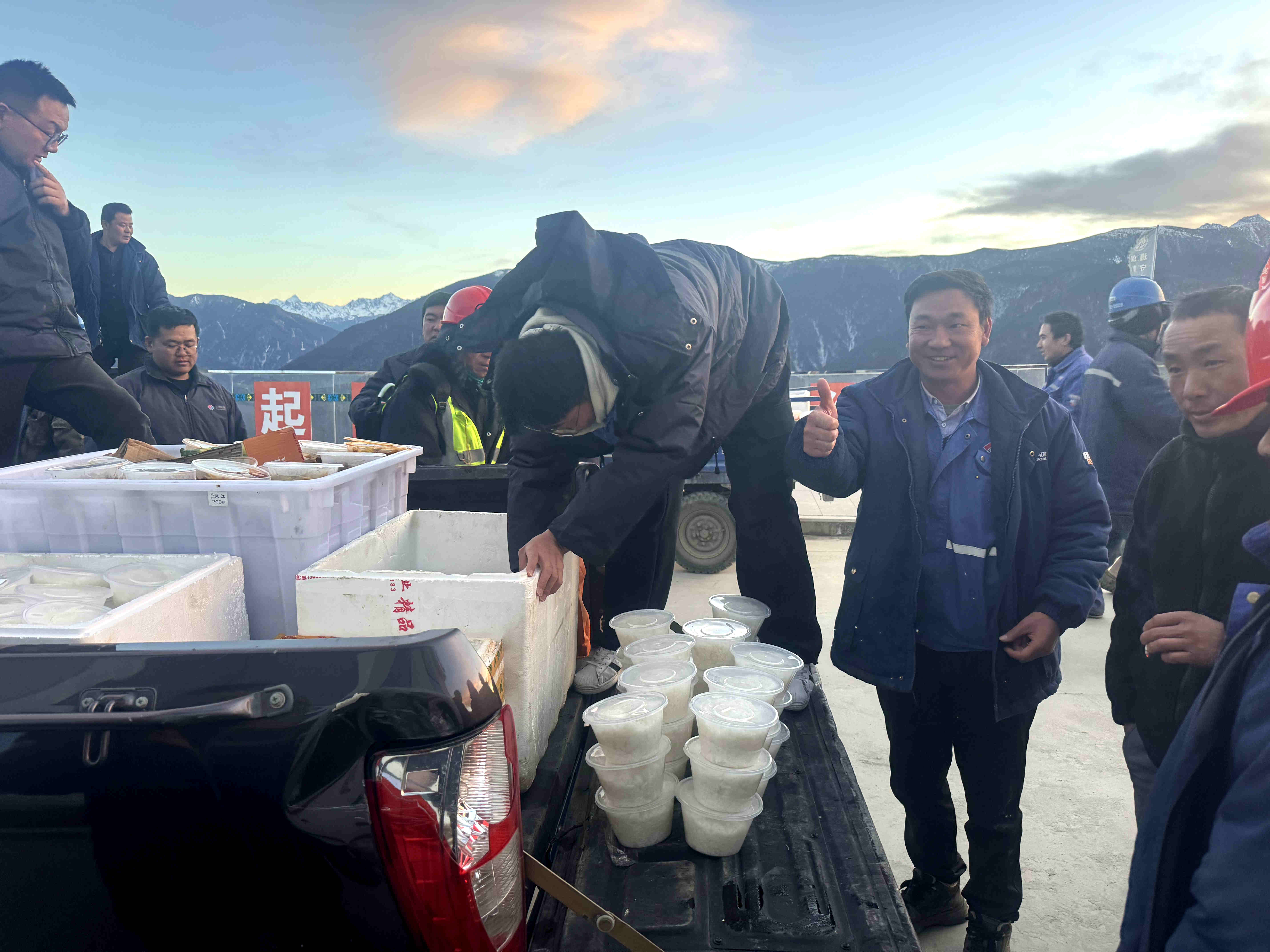 12月的阿坝高原,朔风卷地,霜刃割面,呵气成冰。在海拔超过3000米的阿坝1000千伏变电站建设现场,高寒缺氧已是常态。近期变化莫测的天气与复杂地形更频添断电、断水的考验,数百名建设者的生活与施工陡增困难。 “昨夜又停电,手机信号时有时无,蓄水箱的水冻成了‘冰坨子’。”一位来自四川的钢筋工老师傅搓着冻得发红的手说。在这样滴水成冰的环境里,保障一顿热饭、一壶热水,竟成了比技术攻关更紧迫的“攻坚战”。如何让工友们吃上热食,稳住“军心”,确保这项国家“西电东送”重点工程稳步推进,成了项目部管理智慧与担当的特殊“考题”。 面对困境,项目部迅速将“保后勤、稳队伍”摆在了优先位置。全员化身“后勤突击队”:他们利用工程车辆,定期从百余公里外的县城运回桶装饮用水和易于储存的食材,趁发电机供电间隙争分夺秒开火。 工地上,感人的送餐场景每日循环:从经理到技术员、安全员,人人当起“送餐员”,一盒盒刚出锅、氤氲着白汽的饭菜,一桶桶沉甸甸的清水,被接力递到工人手中。米饭盖着扎实的菜肴,虽因条件所限不算丰盛,却在零下低温里暖彻肺腑,珍贵如金。 “兄弟们辛苦了!天冷,领了趁热吃!”项目部经理李华林边递饭盒边吆喝着,各队有序签字领取。一张张被高原紫外线刻出黝黑皴裂的脸庞漾开朴实笑容。“没想到这种时候,项目部还能想办法让大家吃上热乎饭,心里跟揣了小火炉似的!”年轻混凝土工的话,道尽众人心声。这简单的饭盒,传递的不仅是一餐饭,更是项目部与所有建设者同甘共苦、共克时艰的决心与情谊。 这片孕育电力枢纽的热土上,建设者正在一场打“双线战役”:一线是高标准、高质量推进工程建设的“主战役”;另一线是应对自然挑战、保障人员基本需求的“后勤战役”。送热饭热水的细微之举,如严冬篝火,暖了手足,更熔铸人心——它让每位高原建设者都真切地感受到:他们不是孤军奋战,背后有一个坚实的集体在全力支撑。 风雪弥寒,人心愈暖。阿坝1000千伏变电站的宏伟架构,正由这群在艰苦中坚守、互助中前行的电建人们一砖一瓦地垒砌。他们手中的热饭盒,与远方万家灯火遥相辉映,共绘今冬最动人的温暖风景。 |